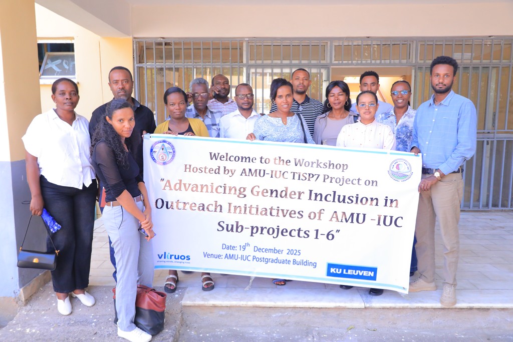 Arba Minch University (AMU), through the AMU-IUC Project, successfully conducted a one-day workshop under the TISP7 project focusing on advancing gender inclusion in outreach initiatives with leaving no one behind principle across sub-projects I to VI. The workshop held at AMU-IUC Video Conference Room, main campus, on 19th December 2025, brought together project leaders, coordinators, and gender focal persons to review progress, identify gaps, and agree on strategic actions for the remaining project period. Click here to see more photos.