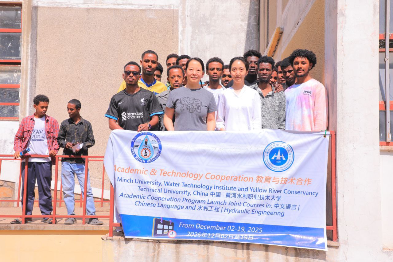 Academic and technological cooperation between Ethiopia and China continues to deepen as Arba Minch University (AMU) and China’s Yellow River Conservancy Technical University (YRCTU) successfully implemented a joint training program in Chinese language and Water and Hydraulic Engineering. The three-week program, conducted from December 2 to 19, 2025, took place at AMU’s main campus and engaged students from the Hydraulics and Water Resources Engineering disciplines. The initiative aimed to enhance students’ technical competencies while fostering linguistic and cultural exchange. Click here to see more photos.