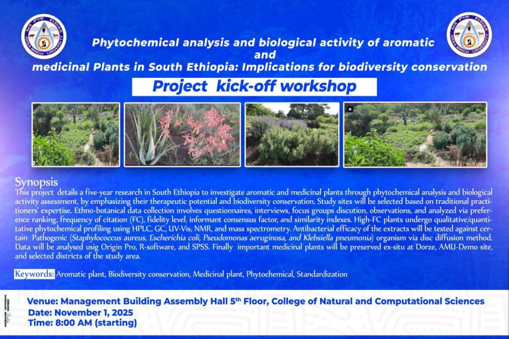 Arba Minch University (AMU) officially launched a project focusing on Aromatic and Medicinal Plants (AMPs) in the South Ethiopia on November 1, 2025, at the university’s Abaya Campus. Click here to see more photos.