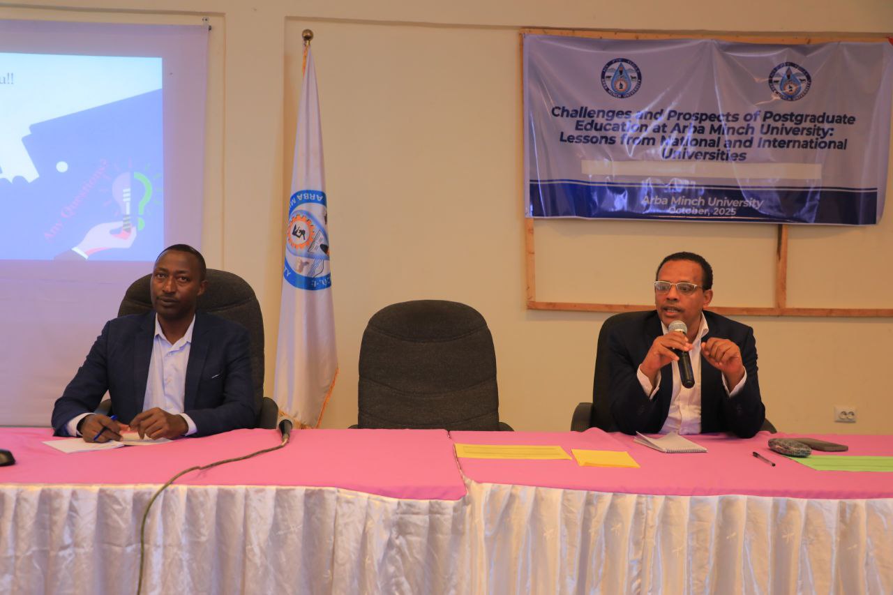 Arba Minch University (AMU) hosted a pivotal meeting focused on critically examining the future of its postgraduate programs on September 22, 2025. The meeting aimed to identify challenges, evaluate progress, and set a transformative roadmap for postgraduate studies at AMU. The university leadership, faculty, and postgraduate students were on the attendance. Click here to see more photos.